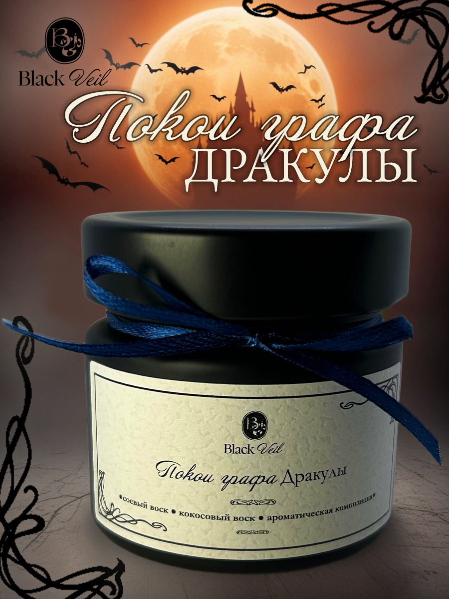 Концепция: Концепция: В потаенных покоях древнего замка, где веками царит тень, таится аромат "Покои графа Дракулы". Мужественный и мягкий, он словно отражает двойственную натуру своего хозяина. В этом запахе – отголоски силы, мудрости и вечной ночи. Зажгите эту свечу, и вы почувствуете себя гостем в убежище Дракулы, где время остановилось, а тьма обрела свою красоту.